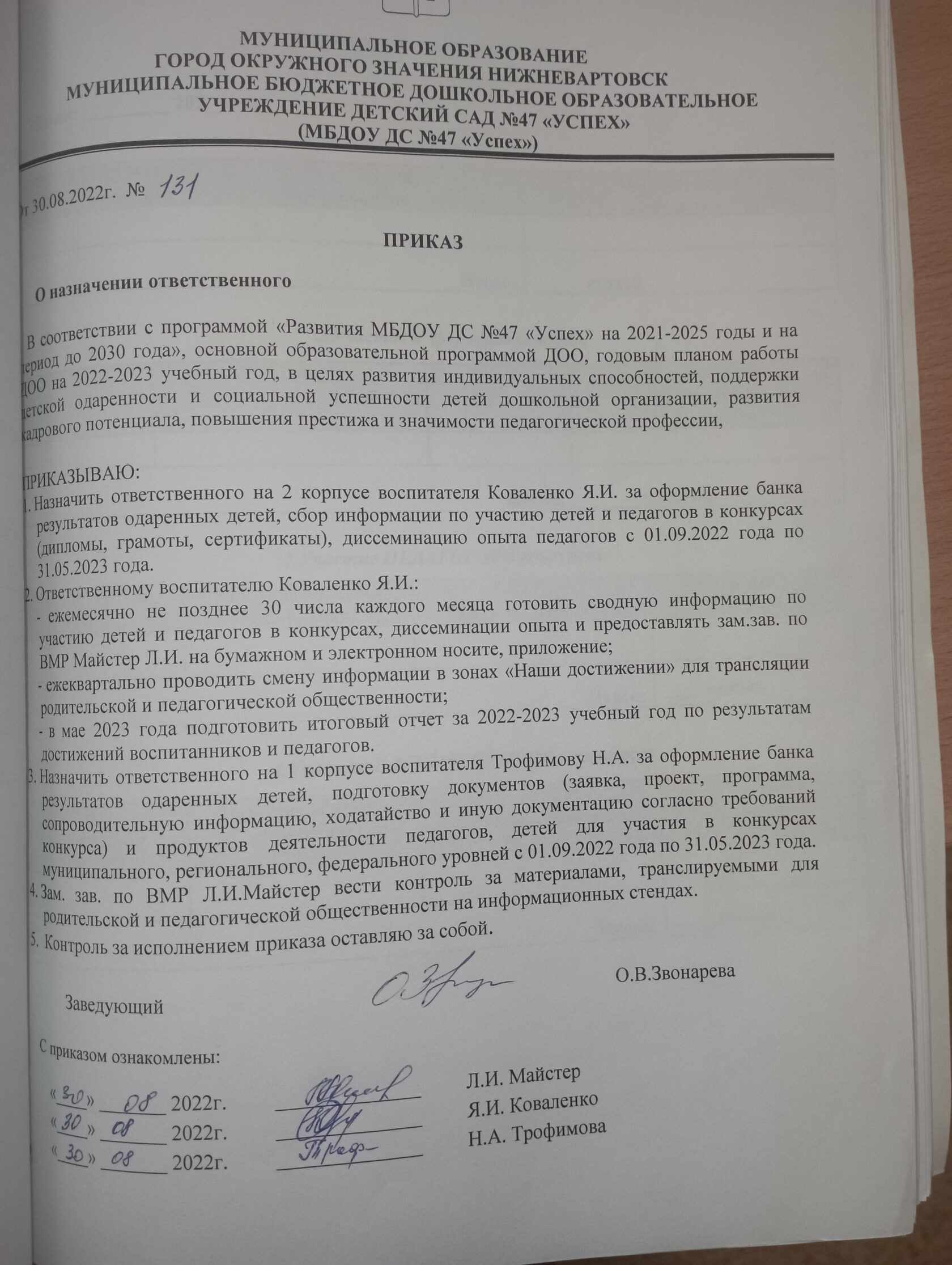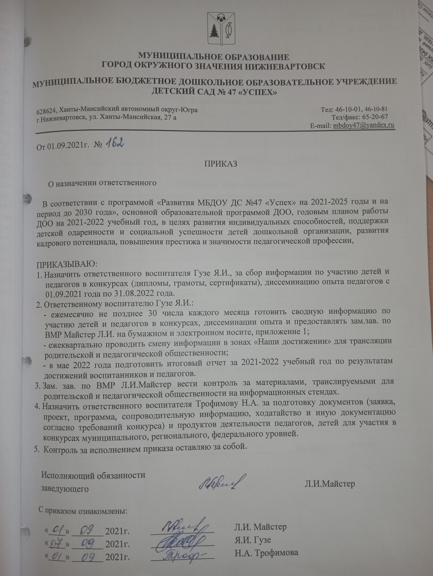О назначении ответственного