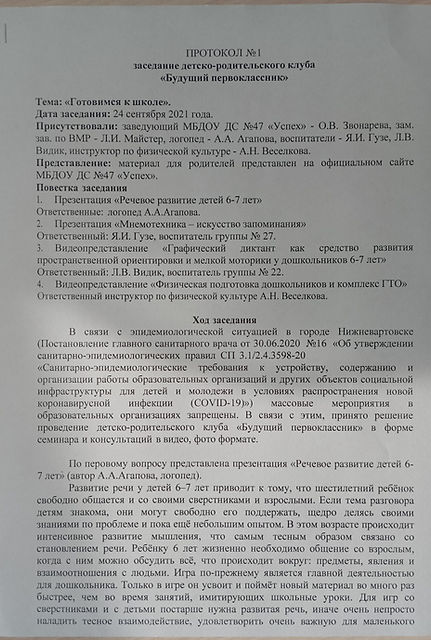 О проведении заседаний детско-родительских клубов