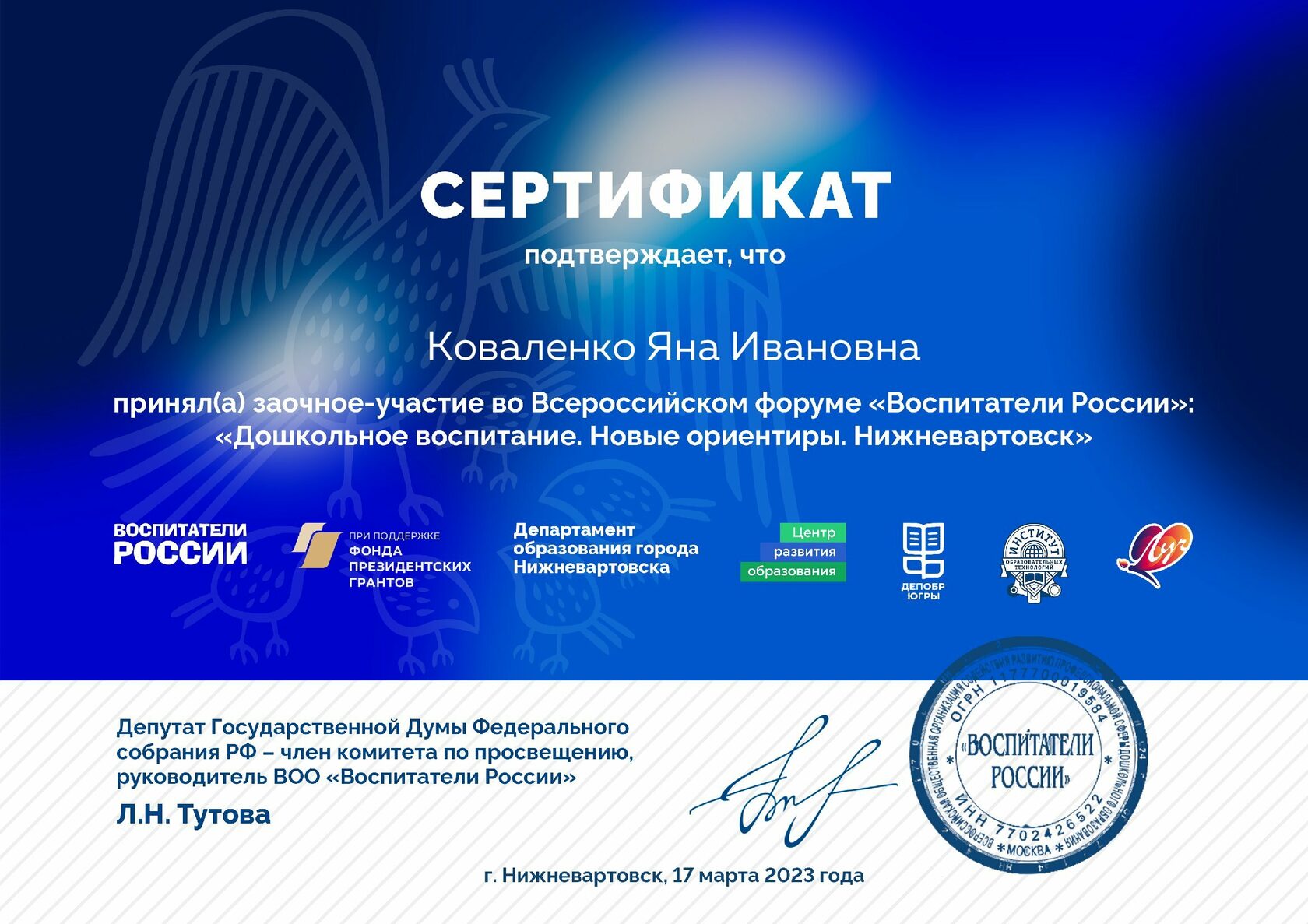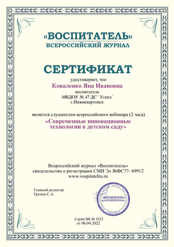 Коваленко Яна Ивановна