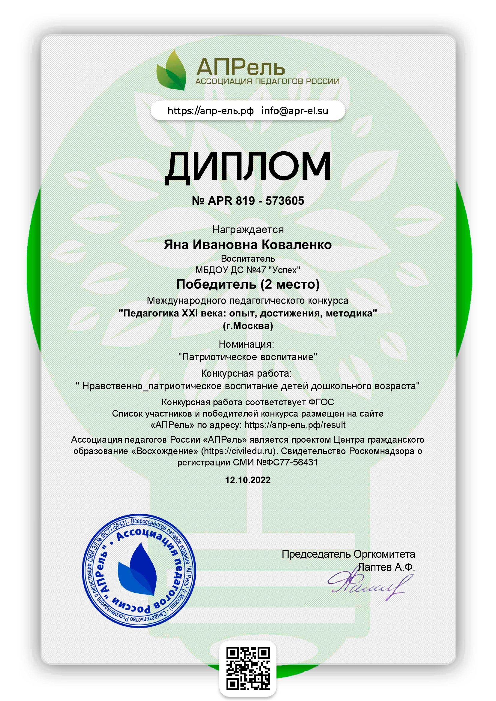 Коваленко Яна Ивановна