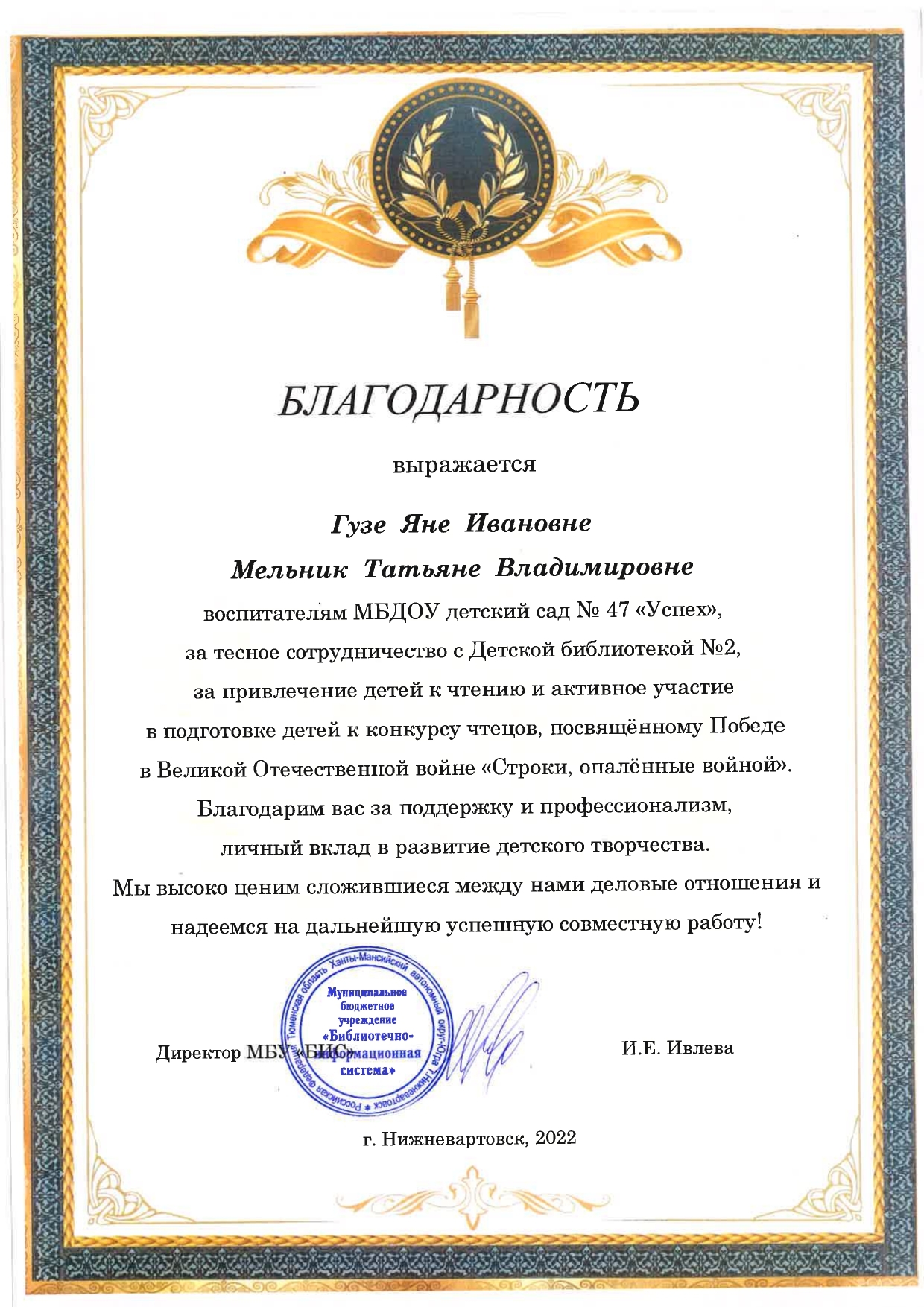благодарности