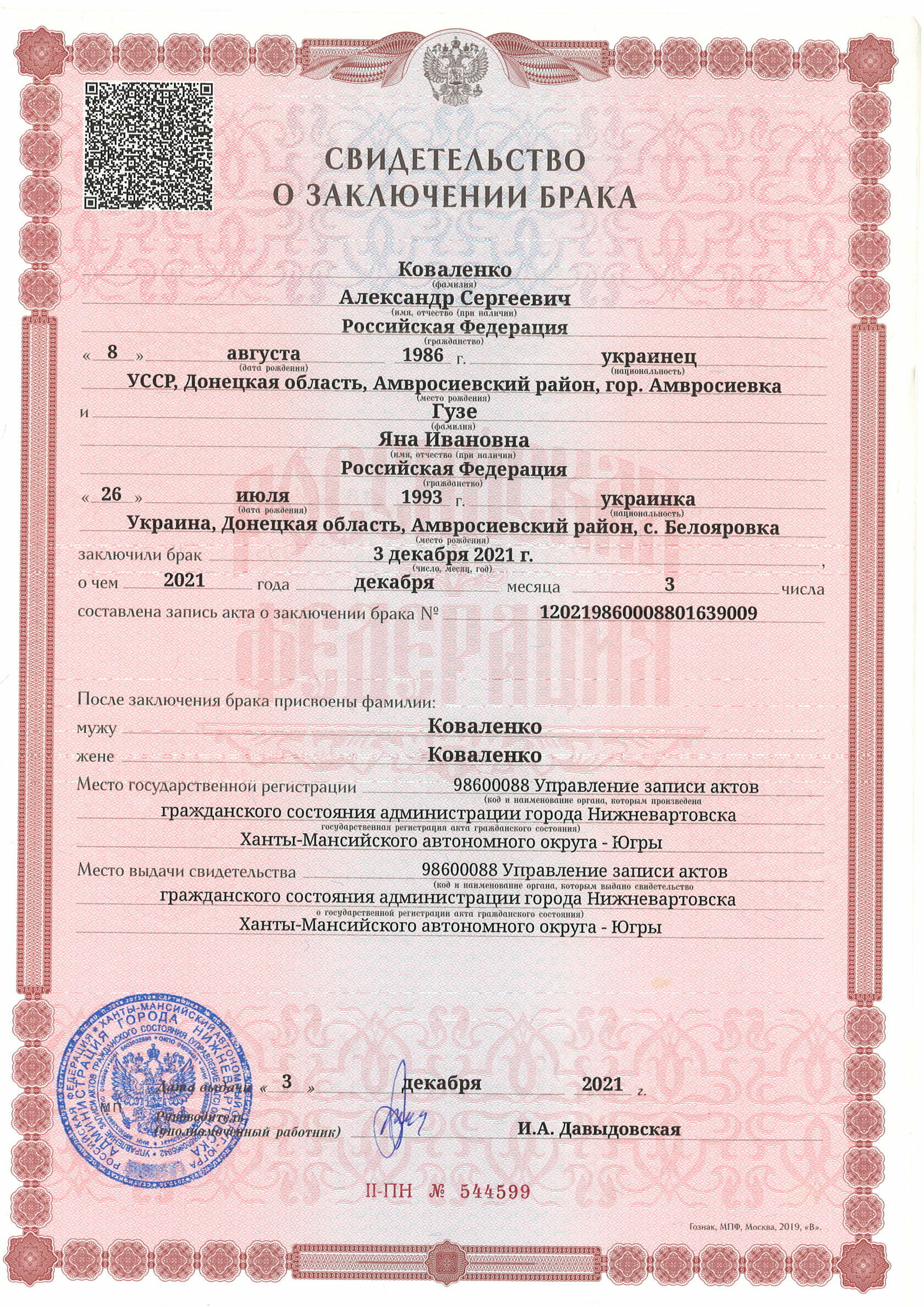 Меня зовут: Коваленко Яна Ивановна